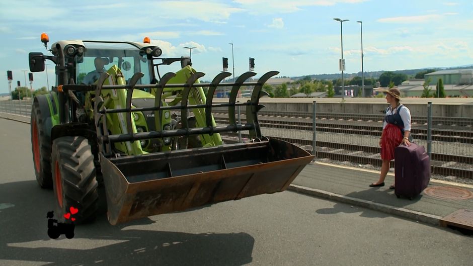 Kärntnerin Sarah wartet bereits am Bahnhof auf ihren Traumbauern und Wolfgang lässt es sich nicht nehmen sie standesgemäß mit dem Traktor abzuholen.