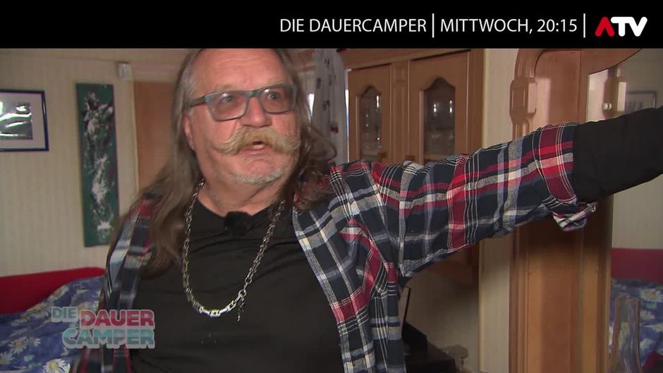 Harry zeigt uns sein Zuhause. Hier lebt er das ganze Jahr, ob Hitze oder Kälte, ob es stürmt oder schneit. Gemeinsam mit seinem Hund hat es sich Harry auf dem Campingplatz in seinem Mobilheim gemütlich gemacht.