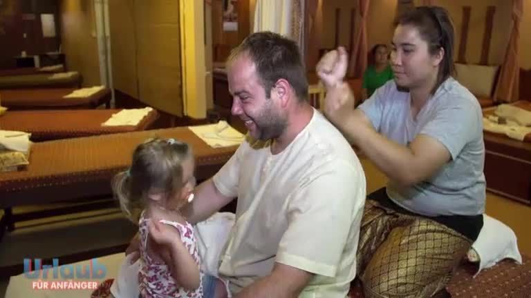 Bei einer wohltuenden Massage wollen sich die gestressten Eltern entspannen. Da haben sie wohl nicht mit der Anwesenheit ihrer Kinder gerechnet...